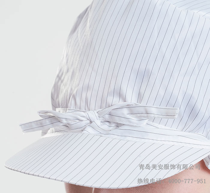 (1)首先防靜電帽子是指為人體的靜電積累,用防靜電織物為面料而縫制的帽子。防靜電織物是在紡織時,大致等間隔地或均勻地混入導電纖維或防靜電合成纖維或兩者混合交織而成的織物。